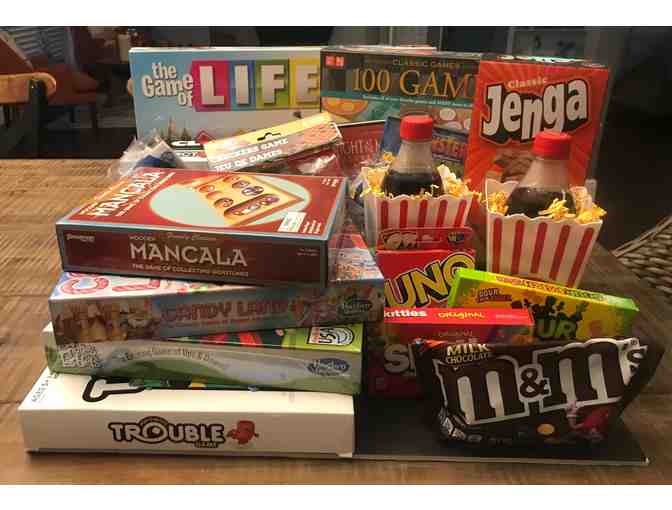 Family Night Basket created by Mrs. Cooney’s 6B homeroom - We all deserve a break from the hustle of our busy lives. Enjoy some quality time with the family with this movie & game night kit.