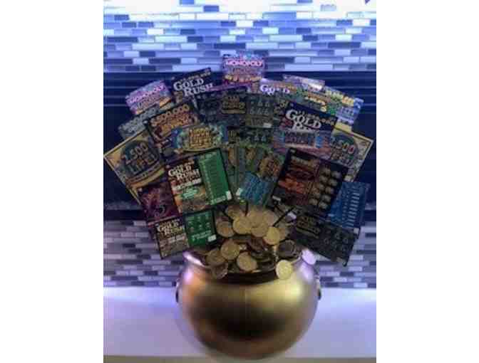 Will the winning bidder of this item will have found their Pot of Gold??? Over $200 in Scratch Off lotto tickets in this Pot of Gold Lottery Basket, BUT who knows what the REAL VALUE will be . . . Will it be YOUR Pot of Gold???