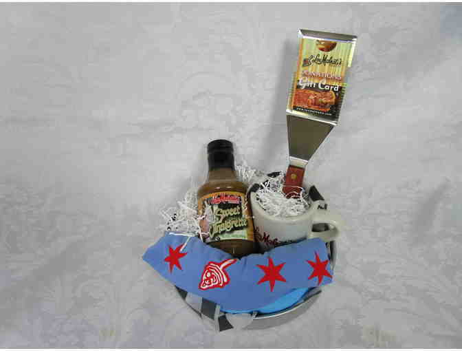Lou Malnati's Pizzeria $25 Gift Card, Deep dish pizza pan, Spatula, Sweet Vinagrette Salad Dressing & Marinade, Mug, Large T-shirt