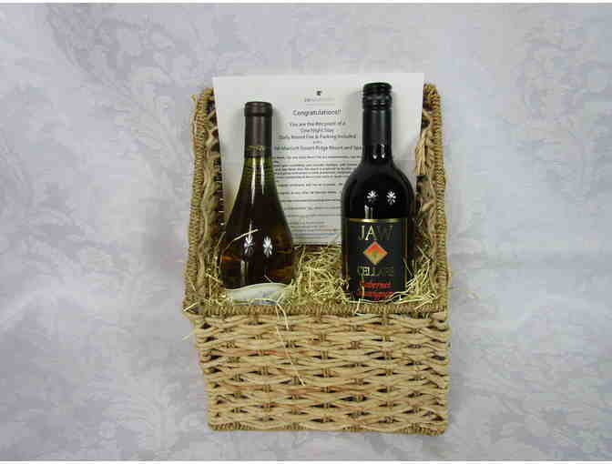 One-Night Stay in a standard guest room includes room, tax & resort fee. Reservations are based upon availability, excludes holidays, with limited availability from January through April. Room reservation must be made 60 days prior to your arrival. Basket includes Jaw Cellars Cabernet Sauvignon & Chateau St Jean Chardonnay wines. Expires 12-30-20.