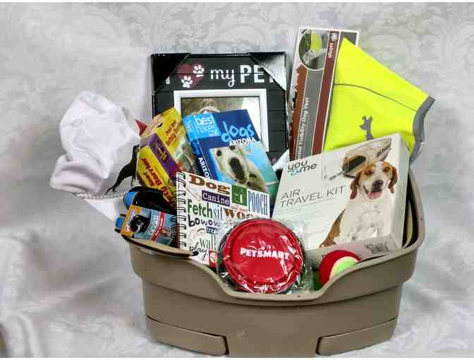 Travelin' Dog Pet Seat, Air Travel Kit, Front Seat Safety Barrier, Essential Visibility Dog Medium Vest, Kurgo Quantum 6-in-1 Leash, Best Hikes with Dogs - AZ Book, Poop Bag Dispenser w/Bags, Collapsible Water Bowl, Dog Photo Album, 4" x 6" Photo Frame, Fisbie, Ball, Dog Themed Cap, Free Night at Petsmart PetsHotel (exp 1/31/20)