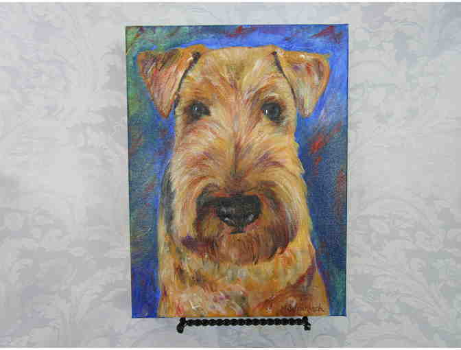 Handpainted Pet Portrait by Marsha of your own dog. This Schnauzer is a sample of her work only and is 9" by 12".