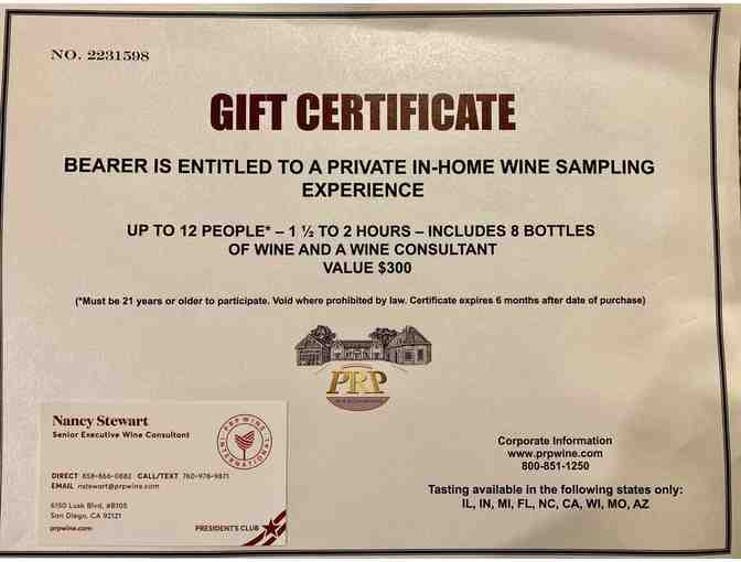 From 1/2 hour to 2 hours; up to 12 people; 8 bottles of wine & a wine consultant. Please see gift certicate image for details.