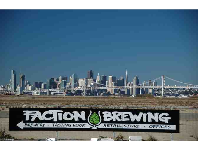 Great beer and beautiful views of the San Francisco skyline await you at Faction Brewing, located on the old naval base in Alameda! This certificate for 2 flights - each featuring up to 5 5oz. pours - gives you the chance to sample pilsners, IPAs, stouts, Belgian styles, and more. Sit out on the patio and enjoy the nice weather, or sip your brews inside and watch Faction's brewers work. Either way, you'll want to come back for more!
