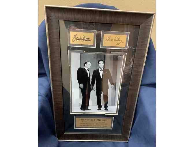 Framed photograph and autographs of The Voice (Frank Sinatra) & The King (Elvis Presley)