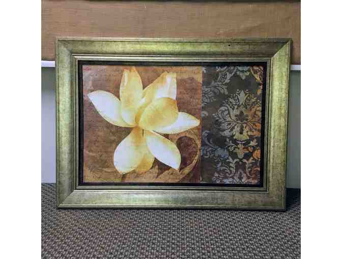 Bid on this beautiful floral artwork! The size is 33.5"h x 46"w. It would look great in an office, living room, or dining room.