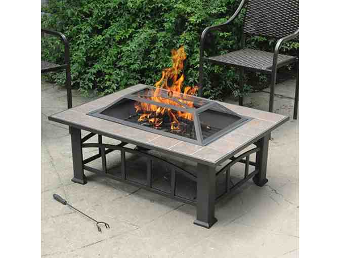 The Axxonn Rectangular Tile Top Fire Pit is a safe way for you to enjoy a fire in your backyard. It features an attractive ceramic tile top that enhances the look of your home's exterior. This rectangular fire pit's ladder frame over the top prevents ashes from blowing out so you can use it with peace of mind. It's ideal for sitting back at the end of a long day and relaxing with friends. You can use it to roast weenies or make s'mores. This pit comes with a poker that lets you turn over the fuel to keep everything aerated and burning well. The brownish bronze finish is neutral to make it easy to blend in with your outdoor decor scheme. The painted bowl is designed to stand up to high temperatures. This unit is sturdy to last for lots of regular use. You can use any sort of regular firewood as fuel.