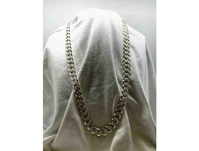 Beautiful Sterling Silver necklace made in Italy. Stamped "925." It is 24 and 1/2" long. 4.2 oz of Sterling Silver (119 grams).