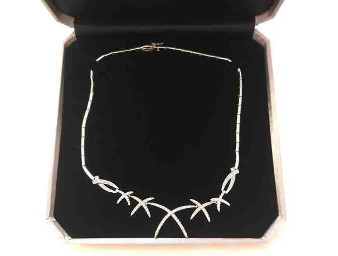Enjoy this unique and stunning Silver Necklace with cubic zirconia. Perfect to dress up any outfit, including wedding attire, Gala Event, or Fundraiser.