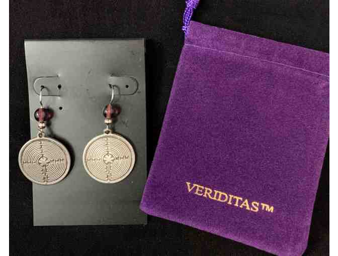 Pewter labyrinth earrings with purple beads. Made especially for Veriditas. These are the last we have in stock!
