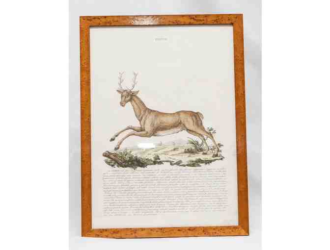"Cervo" (Deer) - Original 19th Century etching w/ hand coloring- brown wood frame