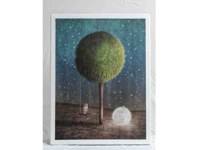 A beautifully whimsical piece by artist Greg Noblin featuring our own ambassador barred owl Tappy, whoooo really steals the show!