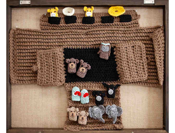 This item includes one handmade, crocheted puppet set with a Noah's Ark theme. Perfect to keep your little loved ones entertained for hours! Includes one Noah finger puppet and six sets of animal puppets.