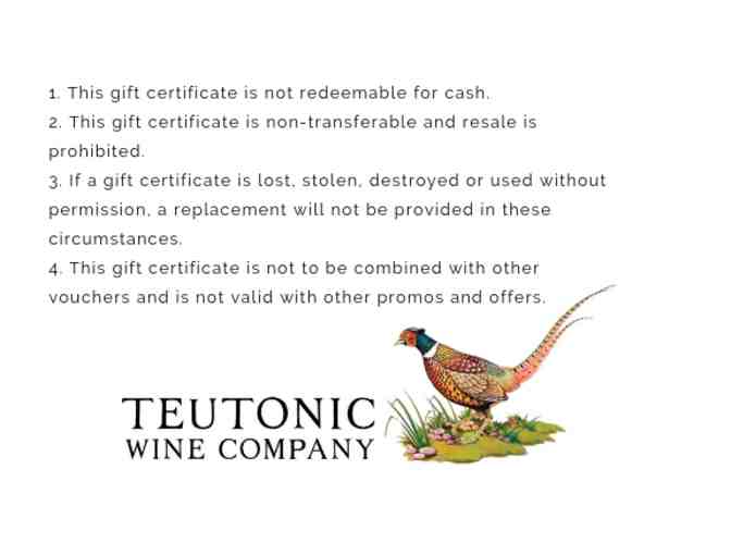 Because this is wine, we will send a redeemable gift certificate. The winner can visit Teutonic Wine Company's online shop and select the wines they want (up to $100 value).