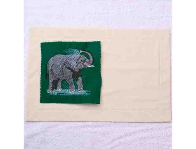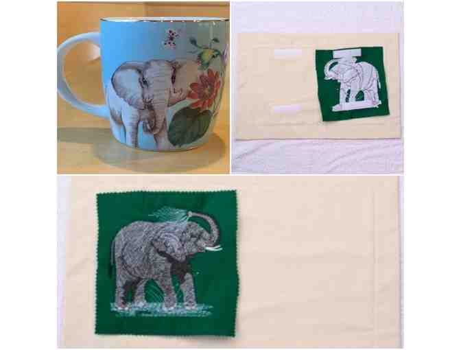 Dinner For One Hand Embroidered Elephant Placemat + Elephant Mug