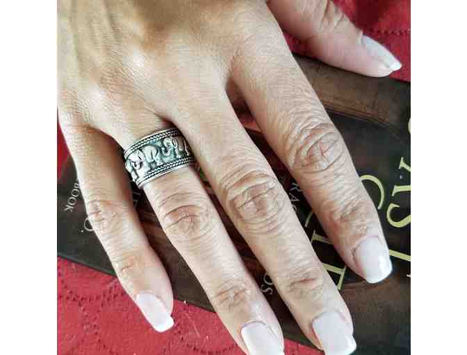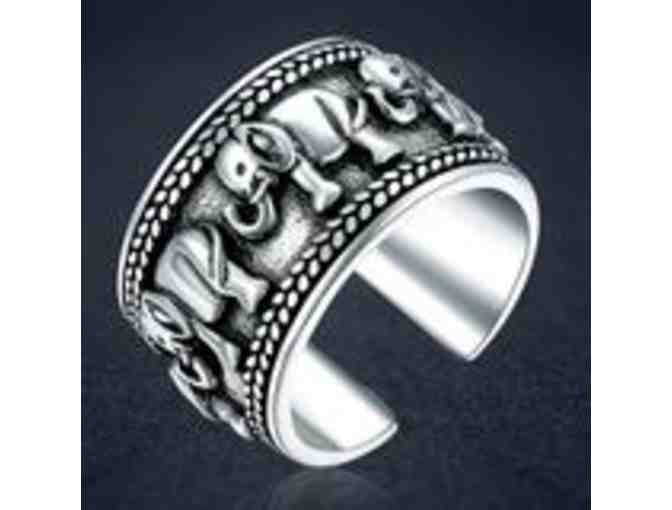 The detail in this Elephant Herd 925 Sterling Silver Ring is simply stunning. The vintage style and wide adjustable band makes it perfect for every elephant lover.