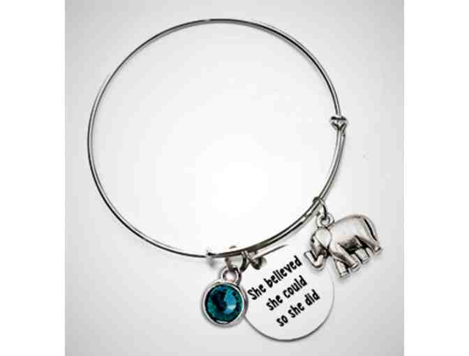 This simple but attractive bangle charm bracelet is a constant reminder of the power and determination within us and as exemplified by the matriarchal nature of elephants.