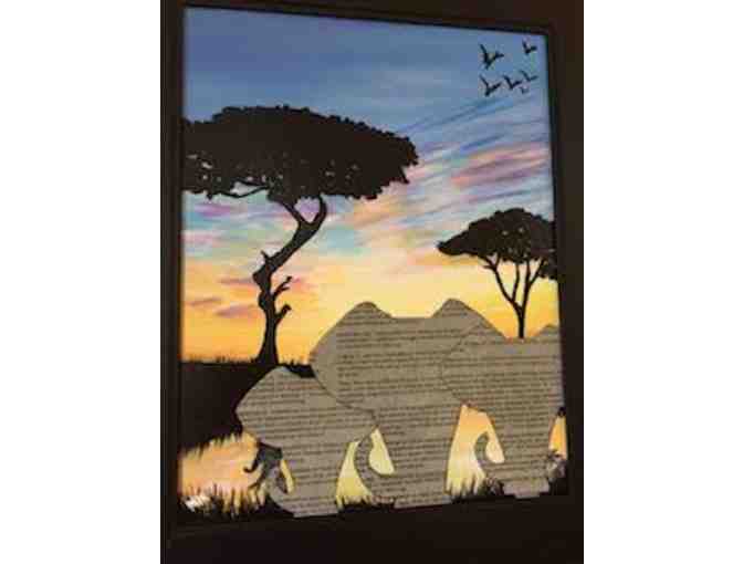 Acrylic/multimedia on canvas board, framed, 14" x 18"