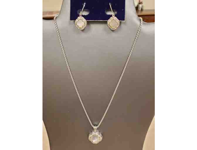 Two-Tone Mother of Pearl Quatrefoil Necklace/Earring Set