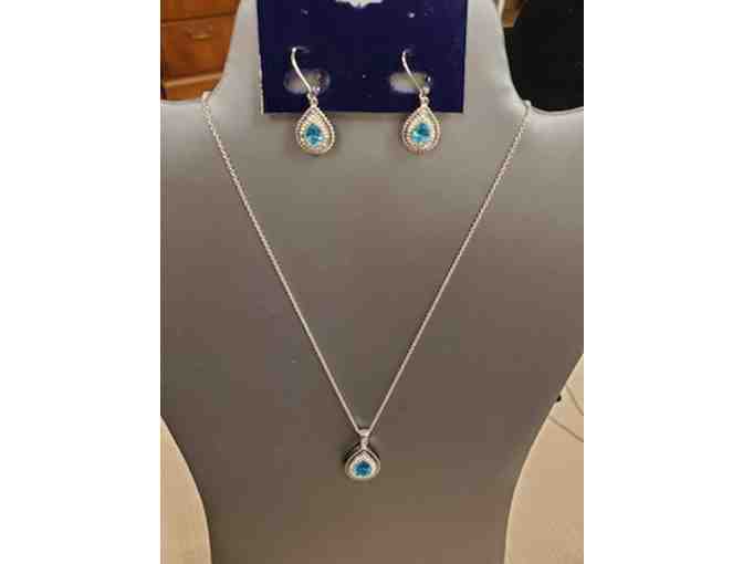 Two Tone Aqua Teardrop Necklace/Earring Set
