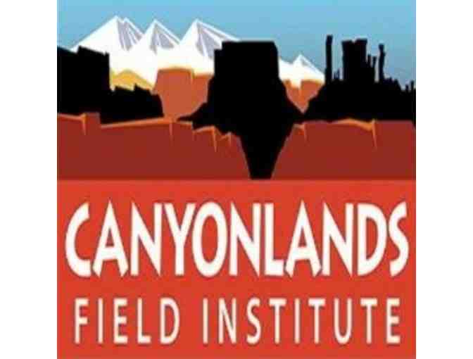 Experience the authentic Colorado Plateau with Canyonlands Field Institute of Moab; field seminars and unique adventures that immerse you in the landscape and culture of their world famous destinations: Arches & Canyonlands National Parks; Colorado, Gree, and San Juan Rivers; Professor Valley; Cedar Mesa; La Sal and San Juan National Forests; Book Cliffs and Range Creek; and Navajo Mountain. This package contains a sticker and $25 gift certificate is for any youth or adult program at CFI.