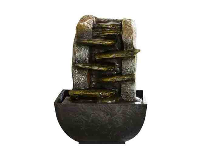Bring soothing sounds to any space with this beautiful, cascading water feature. The portable polyresin fountain, 7" x 5.25" x 5.25", weighs only 1 pound, pump and 6-foot cord included. Some assembly required.