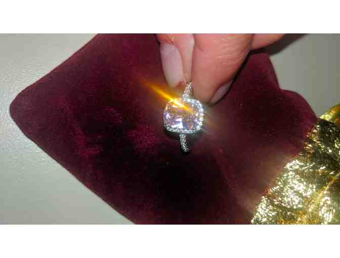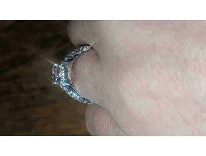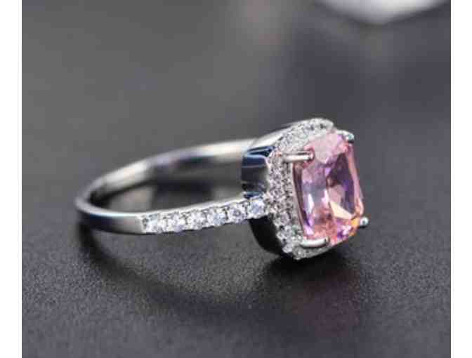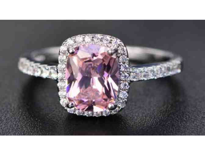 Make a statement with this stunning cocktail ring. Genuine 14 karat white gold filled ring with a large synthetic pink sapphire. Size 6. Ring is nickel-, lead- and cadmium-free.