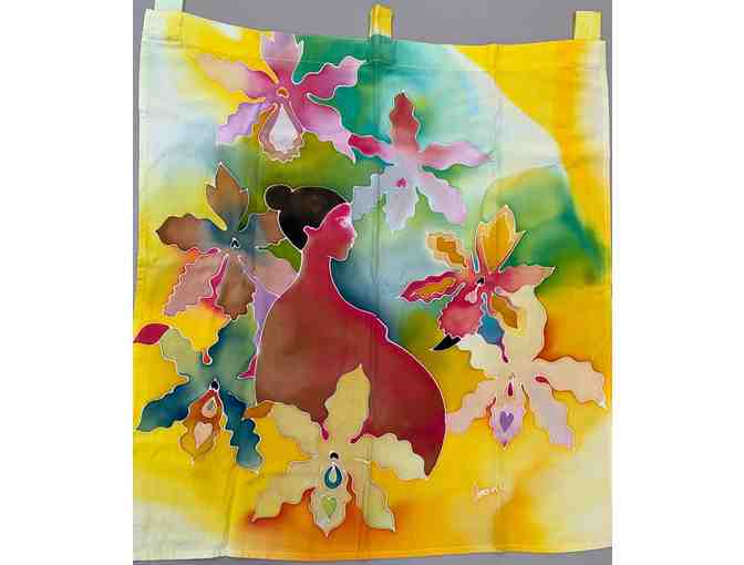 Original Batik by Joanie Mitchell "Mother Love" from Elements Jewelry & Crafts. Batik on rayon hanging 24"w x 28"h.