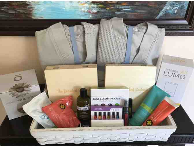Relieve some stress and enjoy this couples basket! Comes with a set of Doterra Essential Oils and 2 aroma diffusers, a pair of organic cotton West Elm robes, at home spa essentials, and 2 Bearded Bastard shaving kits! Perfect for an evening in, or a relaxing afternoon with your spouse or significant other.