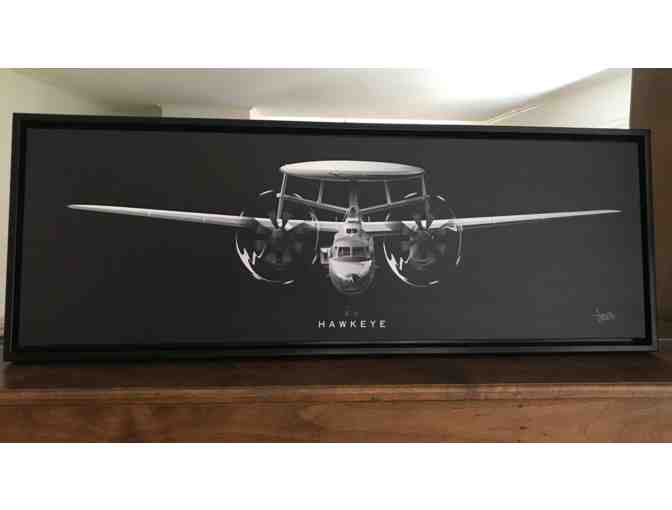 Hang this framed, black and white canvas of the E-2 Hawkeye proudly in your home!