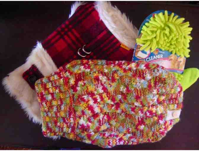 Your small-to-medium dog will be in style year round with this useful 3-piece collection: