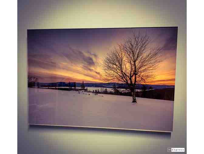 This gorgeous framed portrait of Newfound Lake in winter is perfectly mounted with glass to protect the print in a sturdy frame while not taking away from the amazing detail. Generously donated by Dave Redman Photography.