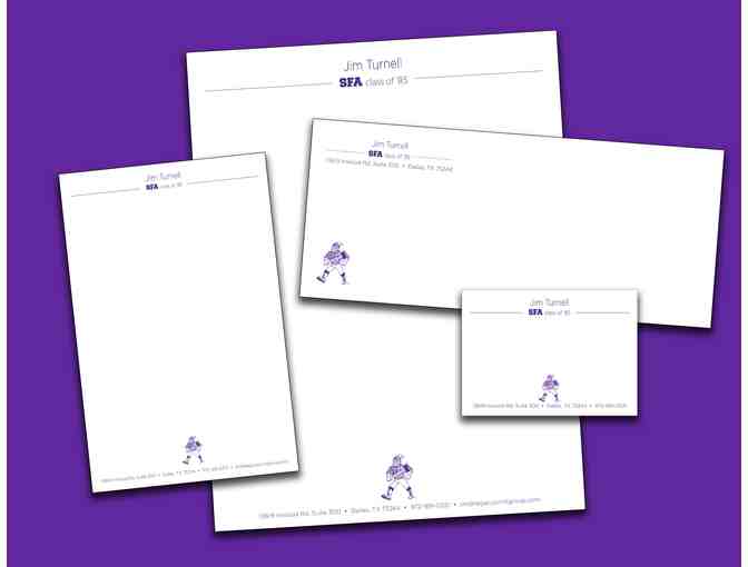 Customize this SFA branded stationery package from Legacy Print Group with your name and grad year!