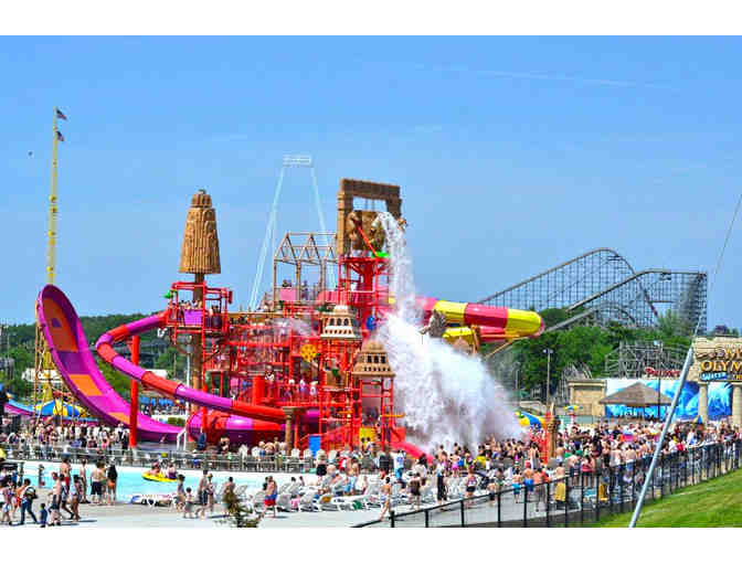 Receive four tickets to the water park. Mt. Olympus' outdoor water park features 42 steep & slippery slides, including the Lost City of Atlantis, the Midwest's largest water play structure, Poseidon's Rage Surf Pool-with waves up to 9 feet tall, The River Troy-The World's Fastest River, three endless rivers, kiddie play areas & more!