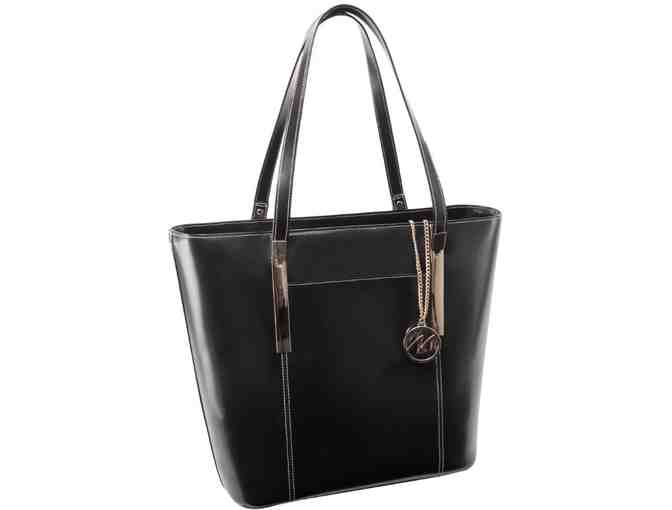 Fashionable functionality is the M Series mantra and begins with the elegant Gold key chain, exposed zipper, easy access exterior front pocket and zipper back pocket. Top color coordinated zipper opens to a fully lined interior compartment. One pocket is perfect for tablets. The other wall of this spacious tote offers a secure zipper pocket and two additional leather reinforced accessory slip pockets. Black & White Paisley Lining. Gold studded feet for stronger stability.