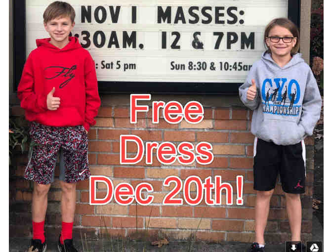 What kid doesn’t want a day to show their true colors in free dress! Let your child participate on December 20th, 2019!
