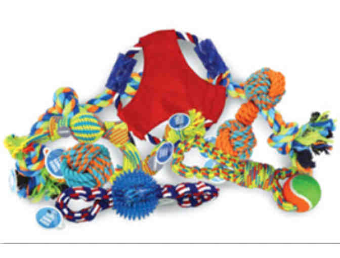Bring home something special for your special doggie. This package includes a basket filled with treats and toys for dogs.