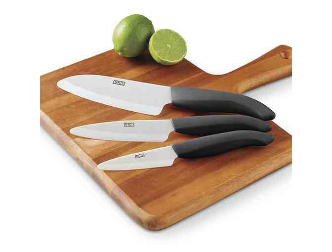 Includes: 5 1/2" chef's, 4 1/2" utility knife and 3" paring knives.