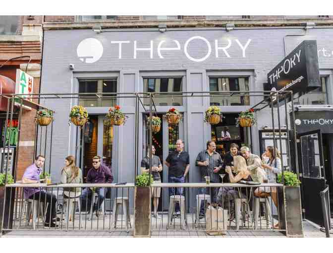 Enjoy a private party at Theory, a venue in River North. This upscale sports bar offers an eclectic menu in a slick, loungey space with plentiful plasma TVs. This special party includes 2 hours of domestic beer, house wine, and cocktails and select appetizers for up to 15 people. It also includes private use of Theory's party room.