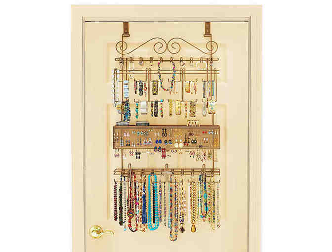 Hang the Overdoor Jewelry Organizer on the back of your door to display your jewelry in a space-saving manner