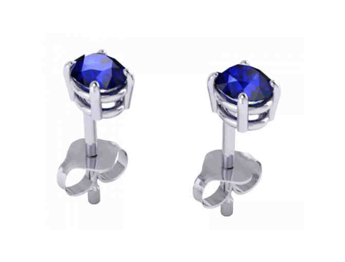 Unmatched elegance made simple, the unsurpassed beauty of round shape sapphires is celebrated in these brand new graceful stud earrings set in 14k white gold. These stunning earrings feature genuine round cut natural sapphires set in basked crowns with friction backs and posts. Comparable in quality and design to other jewelry stores with prices ranging from $600-$750, make a sparkling impact at a fraction of the price with our brand new Signature Collection sapphire earrings.