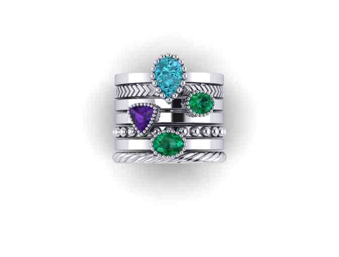This ring collection also includes a full set of our detailed sterling silver spacer bands valued at $45 that feature a beaded, rope and herringbone design, one of each texture. Any of our Signature Collection stackable rings can be intermingled with this collection, we encourage you to mix and match by adding more of our gemstone rings to this stack!