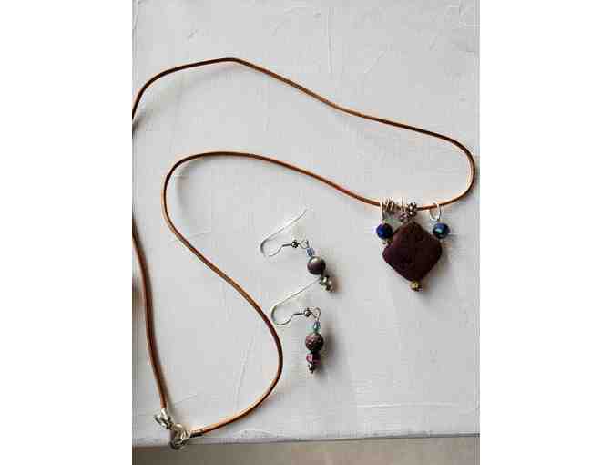Sterling Silver Lava Stones Necklace and Earring Set