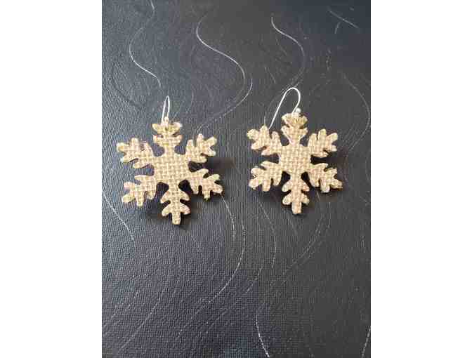 These nickle free raffia snow flake earrings are light weight and perfect for the coming holiday season. They match perfectly with any fall or winter outfit!