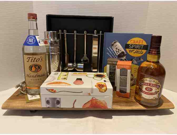 Mix up a few Craft Cocktails with: Craft Spirit World Cocktail Book, Master Class Barware Set, Bar/Wine Pourer, Stainless Shaker, Tito's Handmade Vodka 750ml bottle, Chivas Regal 12 year old scotch 750ml bottle and Mole Cule - Cocktail R-Evolution Kit, Cuba Libre Botanicals, Gin & Tonic Botanicals and a Hand Carved Wooden Tray. Mix, sip and enjoy!