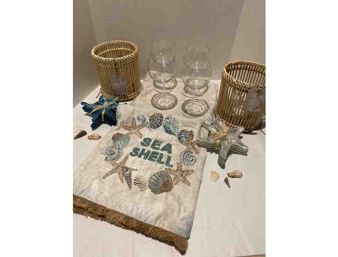 Set the mood at your next gathering with the Sea Shells by the Seashore package, that includes: