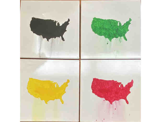 USA 1, USA 2, USA 3, USA 4 are four (4) 12" x 12" pieces of acrylic on canvas artwork from artist Jesse Sanchez.