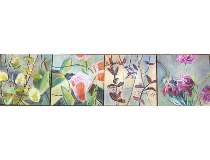 Tulip, Storm, Sand Cherry and Ballet are original works of art, oil on canvas, by artist, Patricia Pardini. The four canvas' are 12" x12" each.