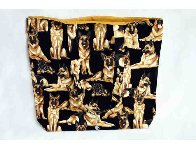 Handmade tote bag with German Shepherd print.