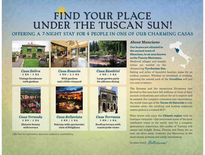 THE TUSCAN ITALY 7 DAY PRIVATE VILLA EXPERIENCE FOR FOUR!!!